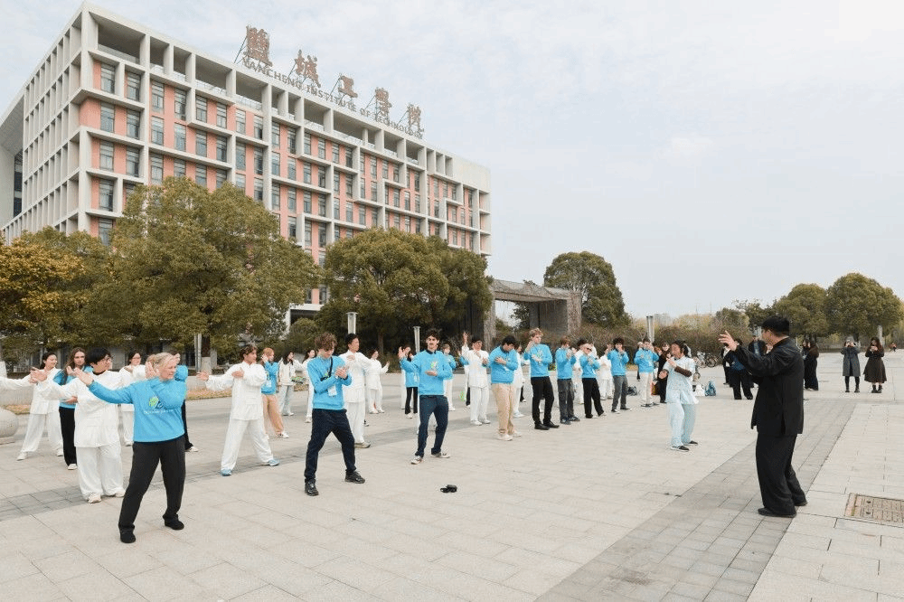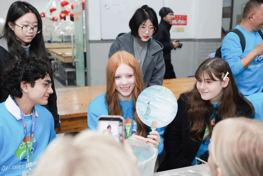 In front of the library, under the guidance of physical education teachers from YCIT, the American students and teachers experienced Tai Chi, a traditional Chinese martial art, feeling the interplay of hardness and softness and the philosophical essence of the East in every movement. Afterwards, they went to the School of Art and Design to try their hand at making lacquer fans, an intangible cultural heritage of China. Under the guidance of professional instructors, they selected fan surfaces, chose lacquer materials, dyed, dried, and completed their own unique lacquer fans, appreciating the elegance and craftsmanship of traditional Chinese skills at their fingertips.
