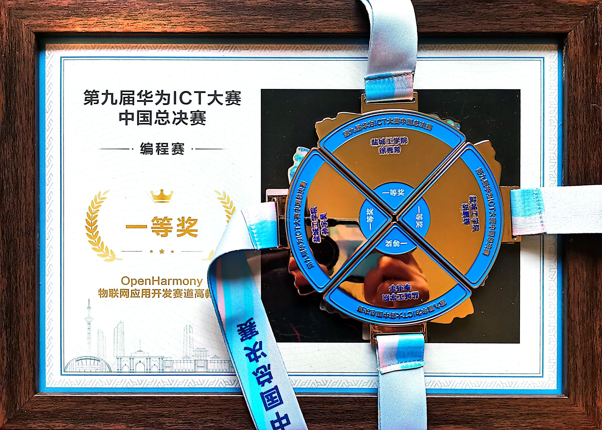 On March 30, the awards ceremony for the 9th Huawei ICT Competition China Finals was held at Southeast University, announcing the winners of first, second, and third prizes. The "Soaring Eagles" team—comprising Hu Penghui, Ji Shuyu, and Sun Yuhao from YCIT School of Information Engineering—won first prize in the OpenHarmony IoT Application Development track of the Programming Contest for higher education institutions. They will now advance to the 9th Huawei ICT Competition Global Finals, scheduled for May 20-24 at Huawei's headquarters in Shenzhen. This competition featured five contest categories and attracted more than 140,000 students from 1,618 universities nationwide.