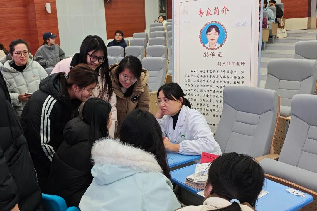 盐城幼儿师范高等专科学校,该院推拿科主治中医师张磊医师以《颞下颌关节紊乱病健康科普》为题,深入浅出地为学校师生们解释了颞下颌关节紊乱病的成因与症状,并与中医妇科副主任中医师洪学兰、推拿科中医师宋孝军为现场师生义诊,解答就诊师生咨询的健康问题。
