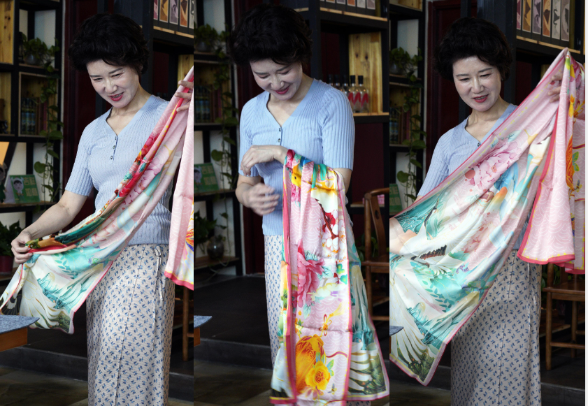 城北网事艺术原创部落精心布置了历年设计艺术学院优秀毕业设计,为传统的旗袍展演注入了别样的新鲜元素。三天的系列旗袍秀在别具创意感的2023年优秀毕业设计作品——“湿地精灵”系列屏风中展开,协会人员与小分队成员共同构思,把以盐城为主题的丝巾设计与旗袍展示融为一体,更让整个展演空间充满了盐城关怀与温暖的氛围,彰显着时尚与传统的融合。创意与匠心使得旗袍、屏风、丝巾等的结合展现出一种充满魅力和惊喜的美感:轻拂的丝缎间,茗香茶浓,流淌着悠扬的古曲,婉约而不失豪放。