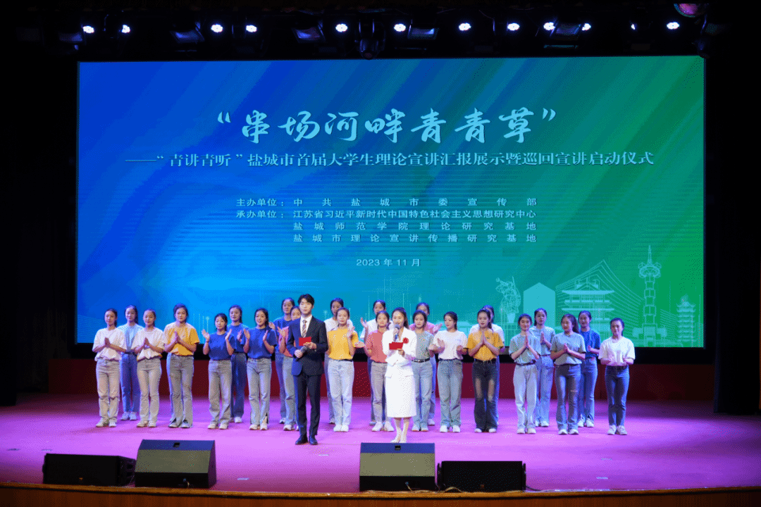 11月11日,“串场河畔青青草”——“青讲青听”盐城市首届大学生宣讲展示暨巡回宣讲启动仪式在盐城师范学院举行。市委常委、宣传部部长陈卫红出席并讲话。盐城师范学院党委书记戴斌荣致辞,省委宣传部理论处处长刘必好,市委宣传部常务副部长、市新闻出版局(市版权局)局长薛万昌,盐城机电高等职业技术学校党委书记、校长韩卫红出席活动。