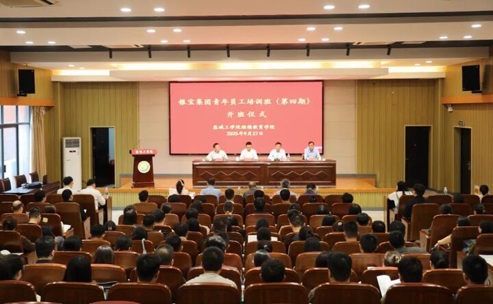 交汇点讯 9月27日,银宝集团青年员工培训班在盐城工学院开班。盐城工学院党委常委、副校长王伟致辞,银宝集团党委书记、董事长杨建文作动员讲话并讲授“第一课”,盐城工学院继续教育学院院长陈志华介绍培训安排。银宝集团党委副书记、副总经理徐军主持。