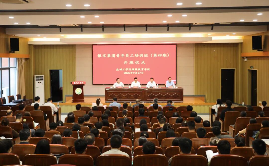 9月27日,银宝集团青年员工培训班在盐城工学院开班。盐城工学院党委常委、副校长王伟致辞,银宝集团党委书记、董事长杨建文作动员讲话并讲授“第一课”,盐城工学院继续教育学院院长陈志华介绍培训安排。