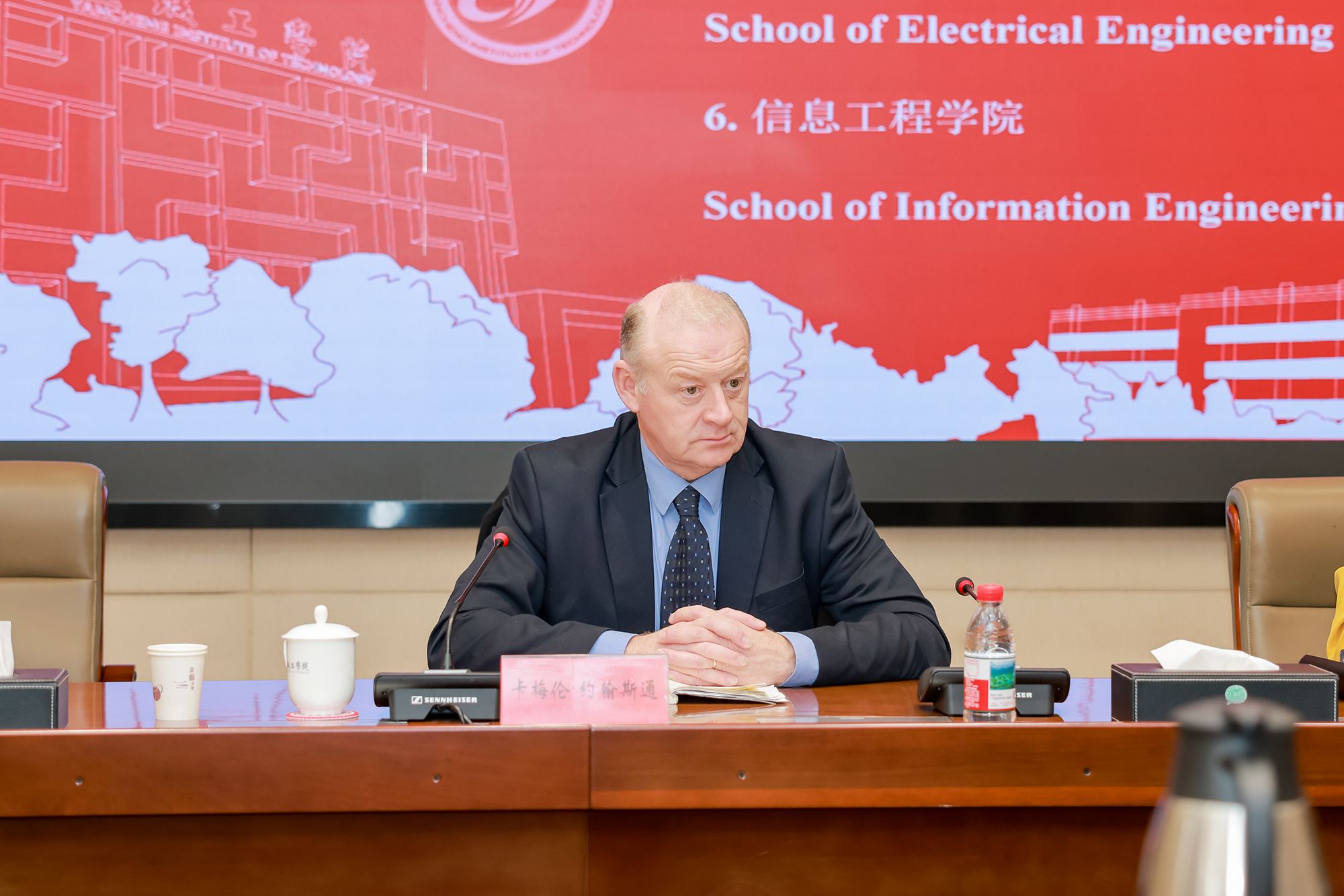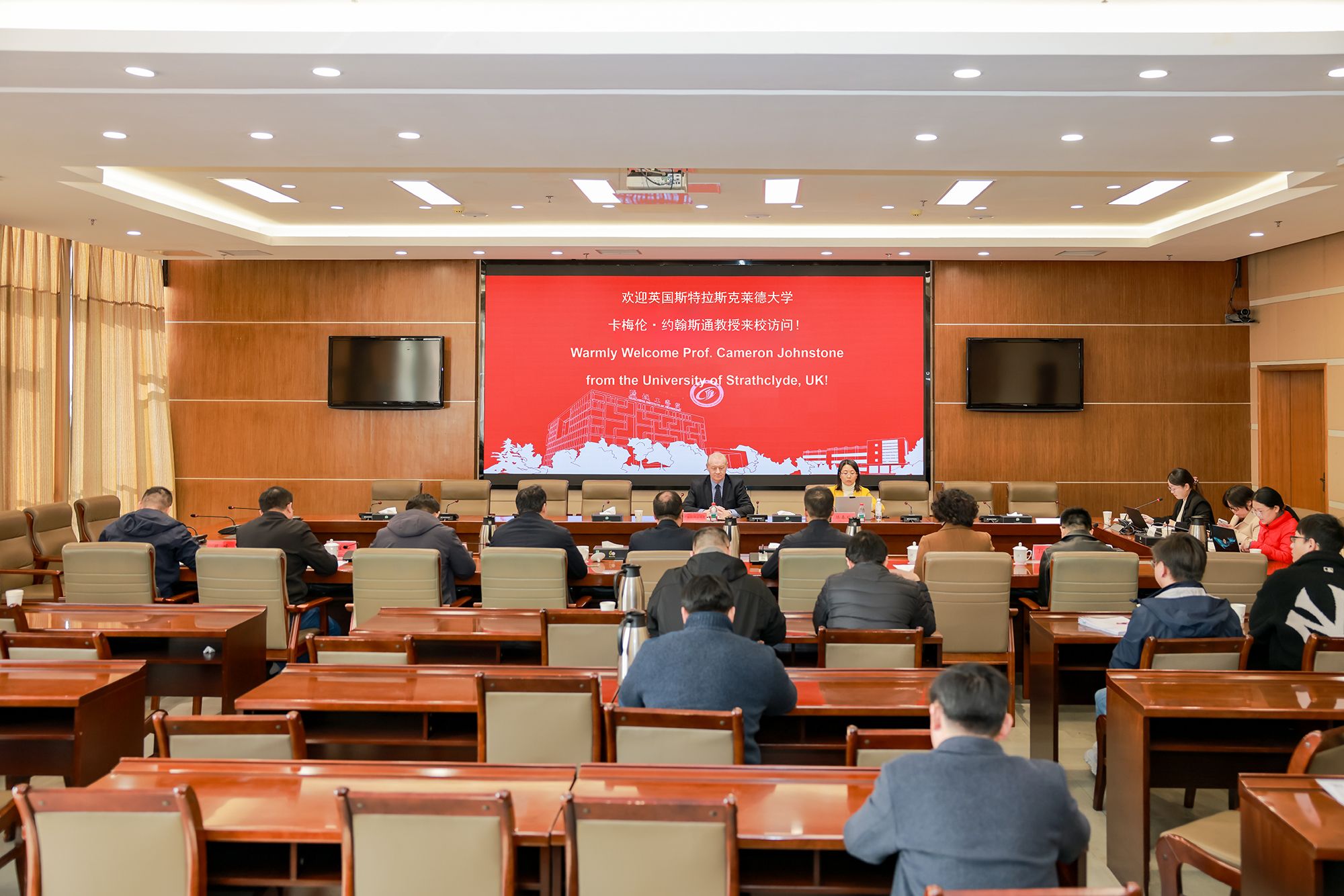 邵荣对卡梅隆·约翰斯通教授的来访表示欢迎,简要介绍了我校的发展历程和办学成果,希望以此访问为契机,两校能够在学生交流、教师互访、科研合作等方面建立长期稳定的合作关系,实现优势互补、共同发展。卡梅隆·约翰斯通教授对我校的热情接待表示感谢,介绍了思克莱德大学机械学科的优势和国际合作现状,并期待与我校建立长期稳定的合作关系,开展更深入的实质性合作。