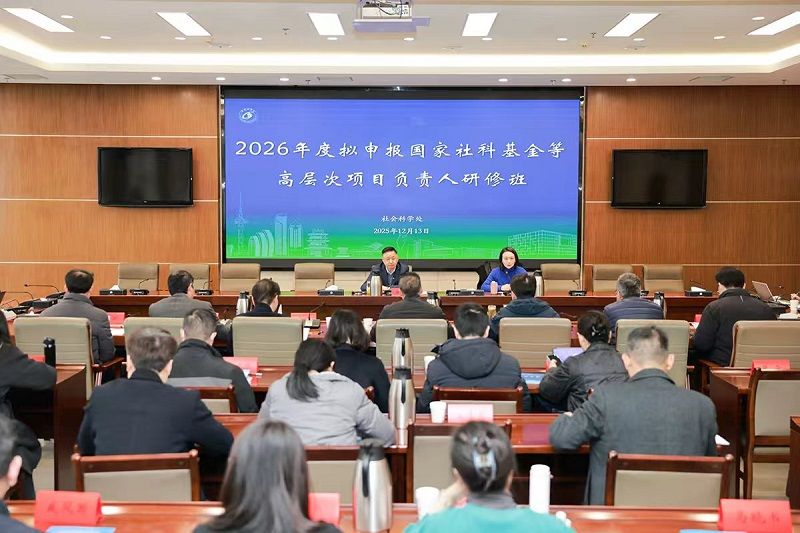 为系统推进有组织科研,切实提升高层次社科项目申报质量与立项水平,12月13日至14日,学校在希望大道校区行政楼9楼视频会议室举办2026年度拟申报国家社科基金等高层次项目负责人研修班(第一阶段)。校党委副书记薛浩出席开班仪式并作动员讲话,拟申报2026年度国家社会科学基金、教育部人文社会科学研究项目负责人以及社会科学处全体人员参加。研修班由社会科学处副处长焦微玲主持。