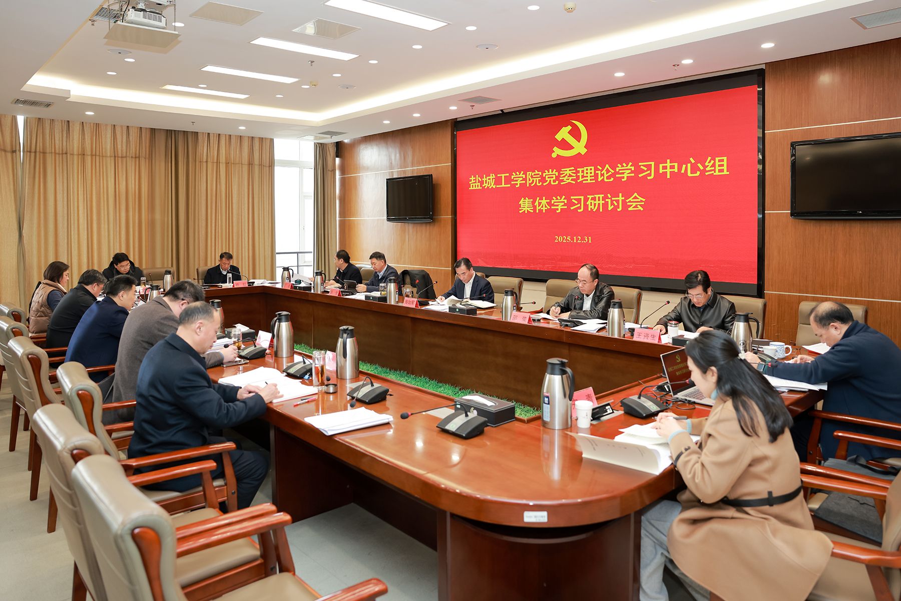 党委书记周如军主持,党委副书记、校长邵荣,党委副书记薛浩,党委常委、副校长王资生,副校长、盐城市政协副主席丁成,党委常委、副校长王伟,党委常委、纪委书记、省监委派驻监察专员陈伟,党委常委、副校长张勤芳、邢晓平,党委常委、统战部部长姚军,党委常委、组织部部长包雅玮,党办、校办、纪委机关、发改办等部门主要负责人参加。