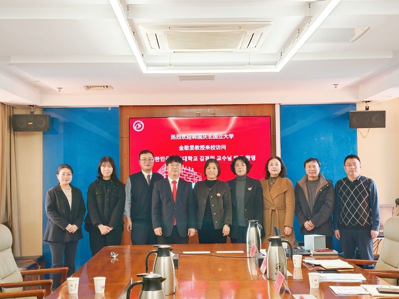 邢晓平对金敬旻教授一行的到来表示热烈欢迎,并简要介绍了我校的发展历程、学科特色与国际合作成果。金敬旻对我校的热情接待表示感谢,回顾了两校友好合作历程,并介绍了庆北大学的教学科研优势及其国际化发展战略。
