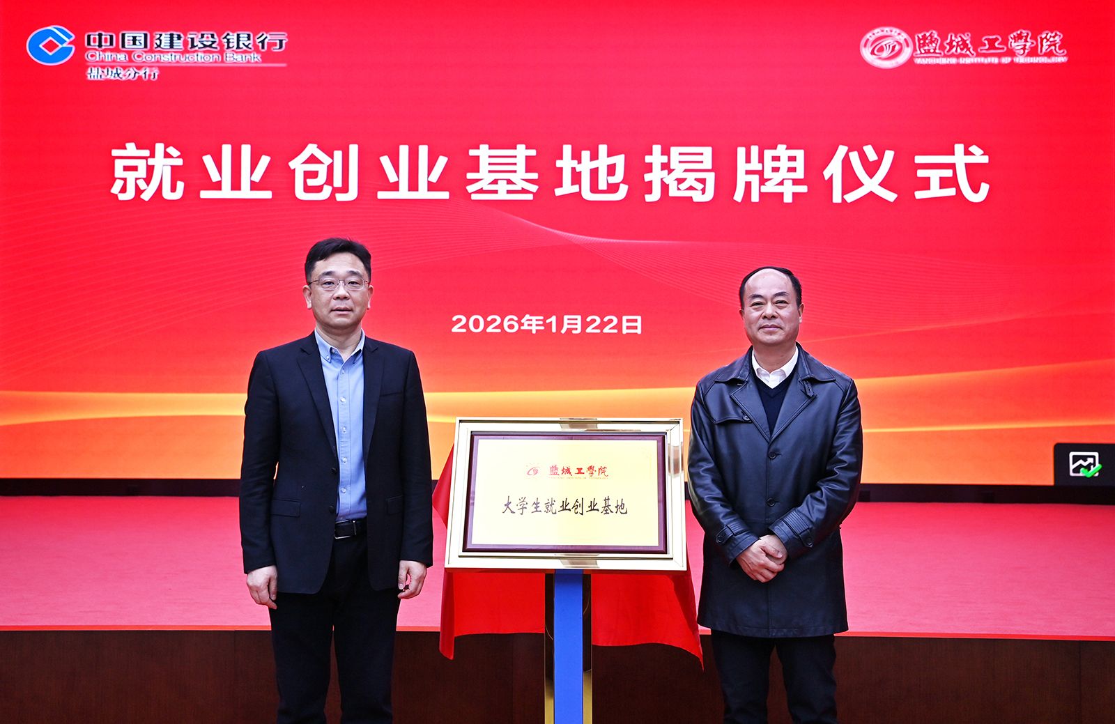 会上,邵荣与高开昂共同为大学生就业创业基地揭牌。学校学生处处长、招生与就业创业指导处处长杨汉华,中国建设银行盐城分行党委委员、副行长季震海代表各自双方签署就业创业基地共建合作协议。