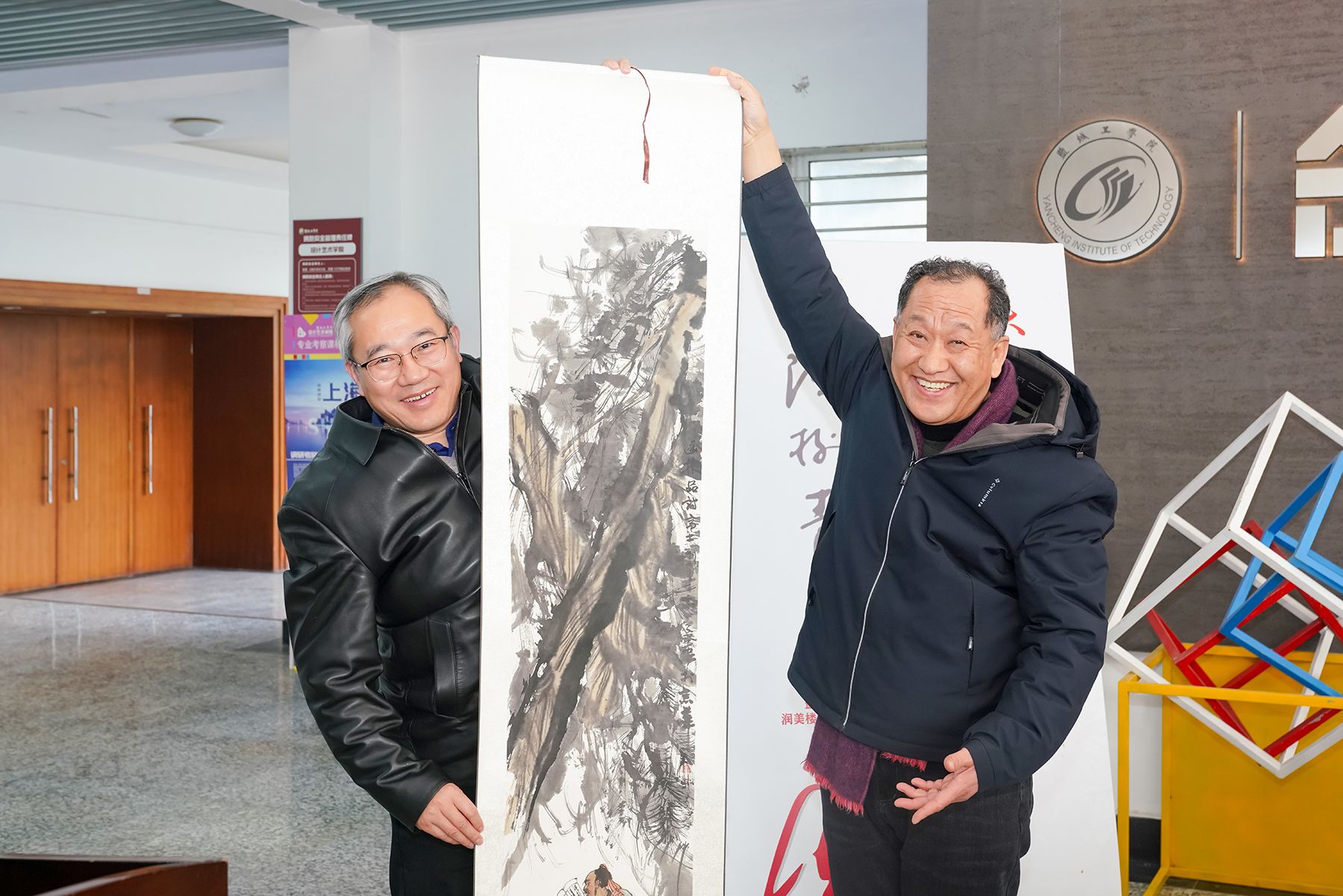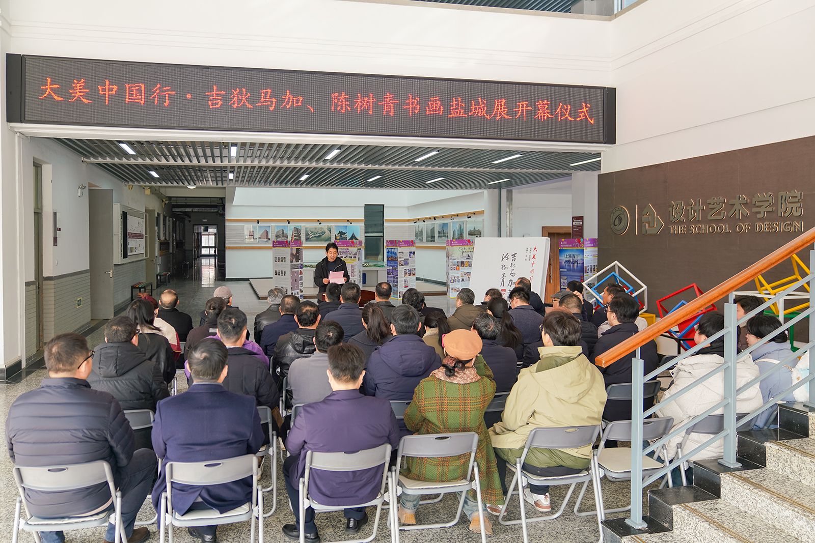 2月5日,由中国诗书画研究会和我校联合主办,中国诗书画研究会教育分会和我校设计艺术学院共同承办的“大美中国行”吉狄马加、陈树青书画盐城展在我校希望大道校区润美楼第一展厅开幕。党委副书记、校长邵荣,党委常委、副校长王伟,党委常委、宣传部部长奚新国,民进中央文化艺术委员会委员、中国诗书画研究会驻会副会长李国富,北京化工大学直属艺术设计系主任庄一兵,中国诗书画研究会教育分会副会长、参展画家代表陈树青以及社会各界书画爱好者、我校师生代表等50余人参加开幕式并观展。开幕式由我校设计艺术学院院长张军主持。