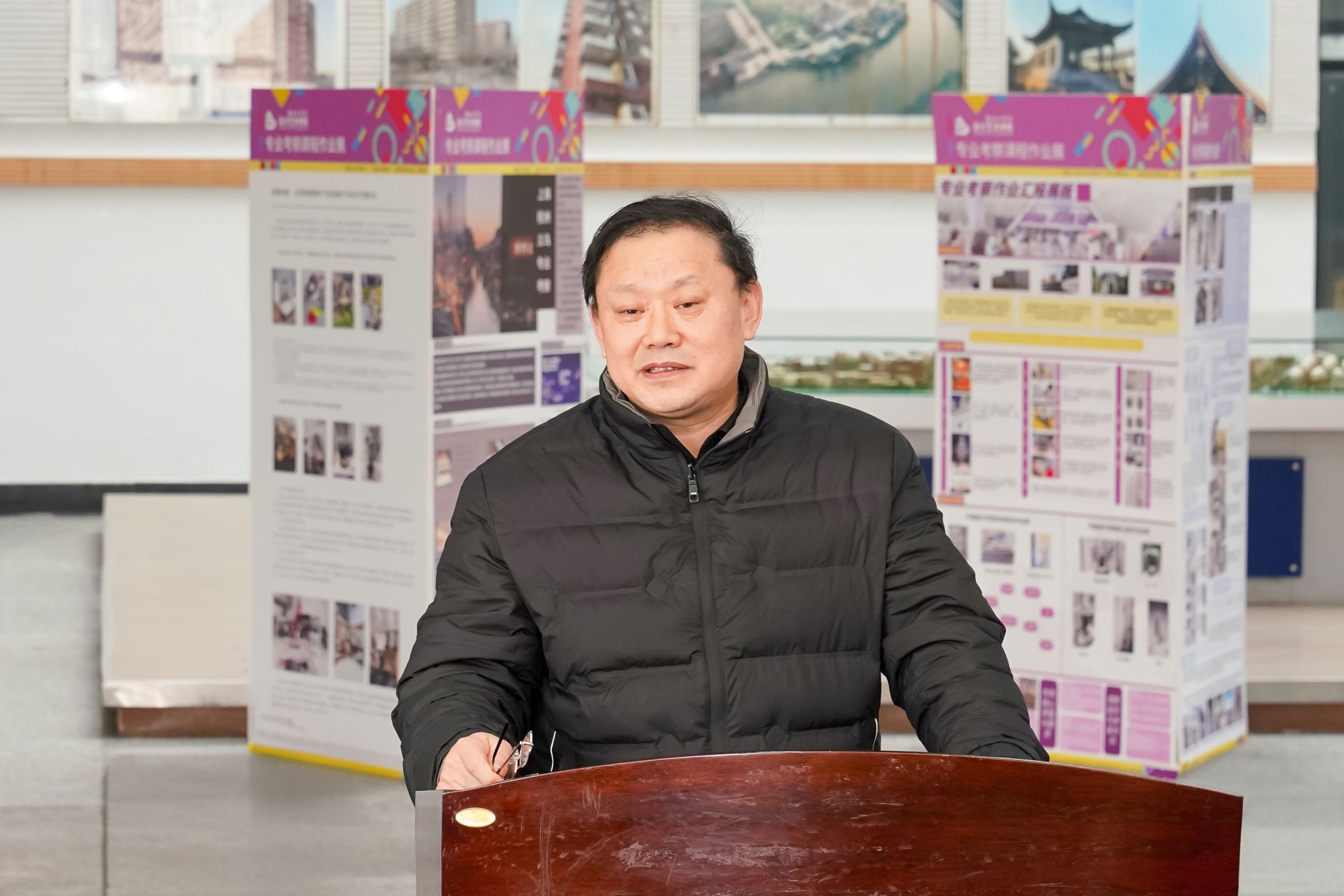 邵荣宣布展览开幕。王伟代表学校致欢迎辞,对各位艺术家与嘉宾的到来表示诚挚感谢,强调,盐城工学院始终重视文化育人与艺术教育的融合发展,润美楼作为校园文化展示的重要阵地,曾见证诸多优秀艺术作品的呈现。此次展览的举办,不仅为校园注入了浓厚的艺术气息,更将助力学校在文化传承创新方面迈出新步伐。