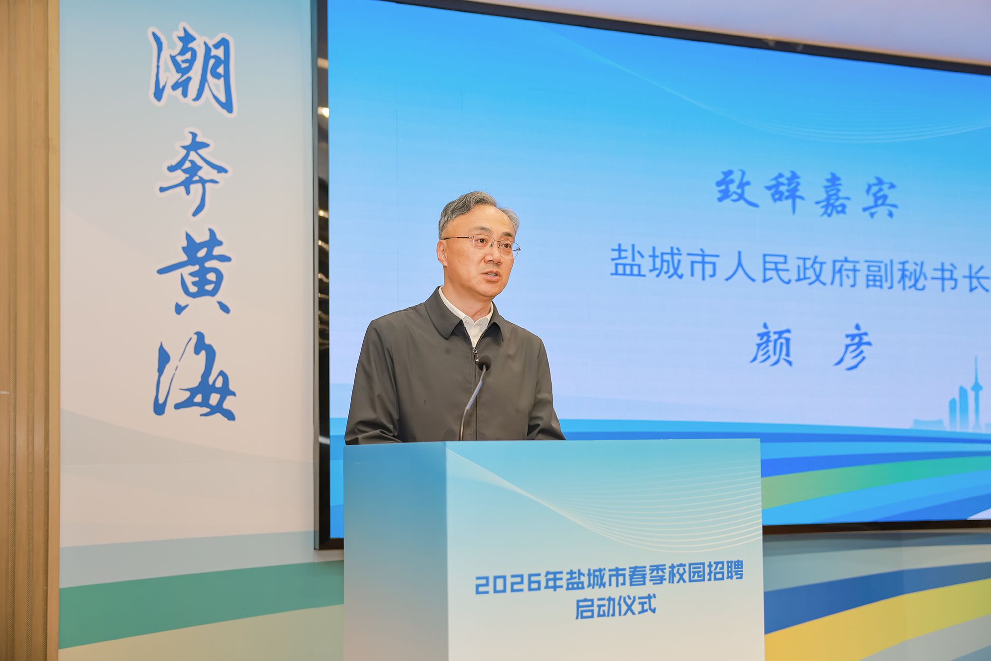 颜彦在致辞中表示,近年来,我市大力实施就业优先与人才强市战略,持续升级“黄海明珠人才计划”,纵深推进“名校优生汇盐”“万名学子聚盐”“在盐高校学子留盐”“就业见习扩岗提质”四大行动。他强调,盐城市将始终秉持“五湖四海聚人才、不拘一格用贤才”的诚意和决心,以更加积极、开放、包容的姿态,不断优化营商环境和人才发展的土壤和生态,为各类人才创造一流的成长舞台。他期待驻盐高校同学们青睐盐城、选择盐城、扎根盐城,在黄海之滨书写属于自己的青春华章。活动现场还举行了盐城市“黄海明珠”人才政策推介,并发布盐城市“人才服务进校园”高校毕业生就业服务系列活动安排。
