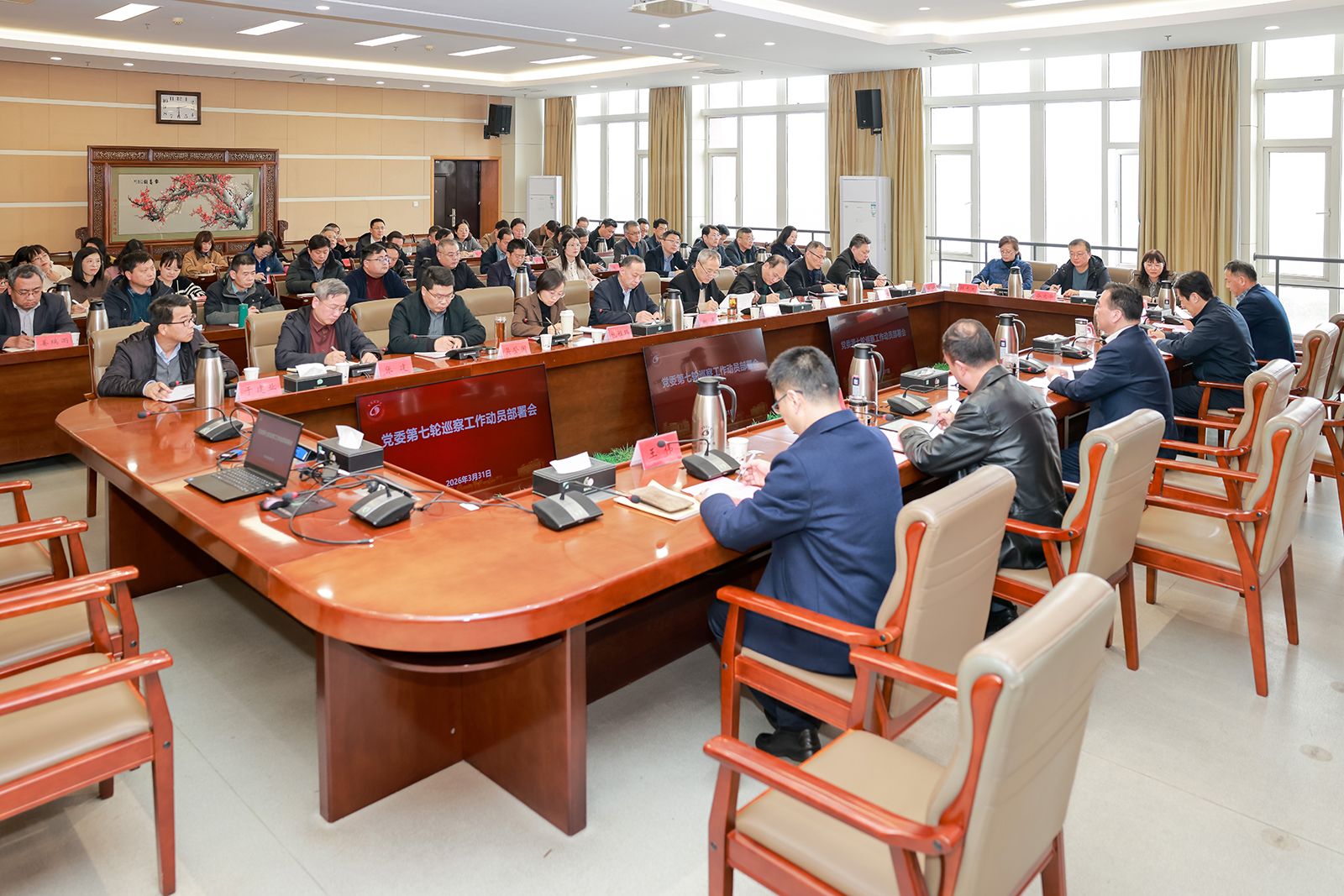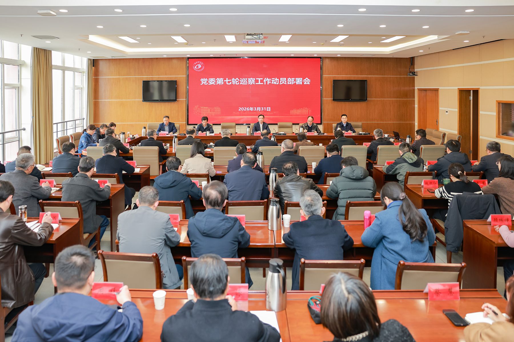 3月31日下午,学校在希望大道校区行政楼九楼视频会议室召开党委第七轮巡察工作动员部署会。会议深入学习了习近平总书记关于巡视工作的重要论述,全面贯彻二十届中央纪委五次全会、十四届省纪委六次全会部署和全省巡视巡察工作会议精神,对党委第七轮巡察工作作出动员部署。校党委书记周如军,党委副书记、校长邵荣,党委常委、副校长王资生、王伟出席。党委常委、纪委书记、省监委派驻监察专员聂邦军主持会议。党委巡察工作领导小组、党委巡察组、巡察整改评估组、信访工作组及意识形态专项检查组全体成员,巡察办工作人员参加会议。
