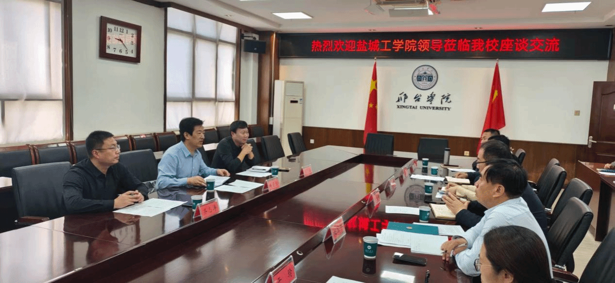王资生对邢台学院热情接待表示感谢。他简要介绍了盐城市在新能源产业、汽车产业及现代农业等领域的发展成效和我校办学历史、发展定位、教育教学、学科建设以及服务区域海洋经济发展等方面情况。他希望以此次调研交流为契机,进一步拓展两校合作领域,在人才培养、重点实验室建设、科研协作等方面实现互利共赢。