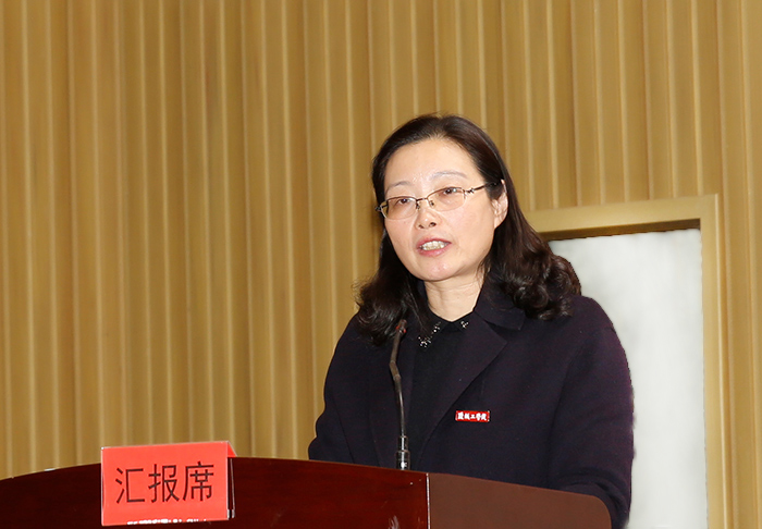 方海林作行政领导班子述职报告。她着重报告了学校以应用型人才培养为导向,推进人才培养高质量;以打造优势学科为目标,推进学科建设高质量;以领军人才和团队建设为重点,推进队伍建设高质量;以重大成果为牵引,推进科技创新和服务发展高质量;以开放办学为抓手,推进教育国际化高质量;以多元合作为方向,推进社会服务高质量。她还报告了我校深入推进校地合作、校地融合,紧密对接地方产业,产教融合,强化科技成果转化,服务地方等方面高质量发展的突出成绩及典型案例。2019年,学校强基础、破难点、上水平,人才培养呈现新面貌、科技创新实现新飞跃、校地合作取得新突破、产教融合再上新台阶、社会服务打开新局面,各项工作亮点纷呈,学校办学实力和核心竞争力进一步增强。