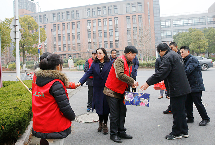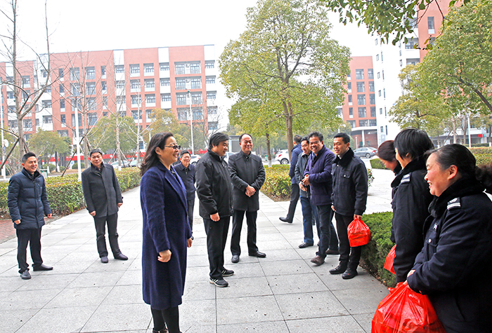 校领导一行先后来到希望大道校区和建军东路校区,逐一慰问了学生公寓管理员、保安队员、环卫人员以及物业保障工作人员等,给每一位节日期间坚守岗位的员工送上了新春慰问品,对他们为学校的辛勤付出表示感谢。一声声问候,一句句祝福,充满着浓浓关爱。