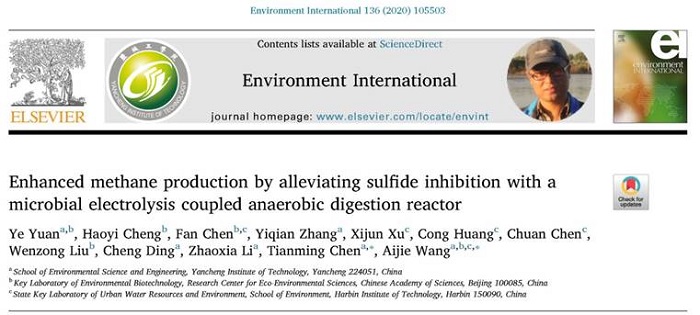 近日,环境学院远野博士为第一作者、盐城工学院为第一单位的研究论文《Enhanced methane production by alleviating sulfide inhibition with a microbial electrolysis coupled anaerobic digestion reactor》(Yuan et al.,Environ. Int., 2020, 136, 105503)在环境领域国际公认顶级期刊《Environment International》发表。该期刊2019年影响因子7.943,近5年影响因子8.763。本研究由远野博士承担的国家自然科学青年基金(51608467)资助完成。