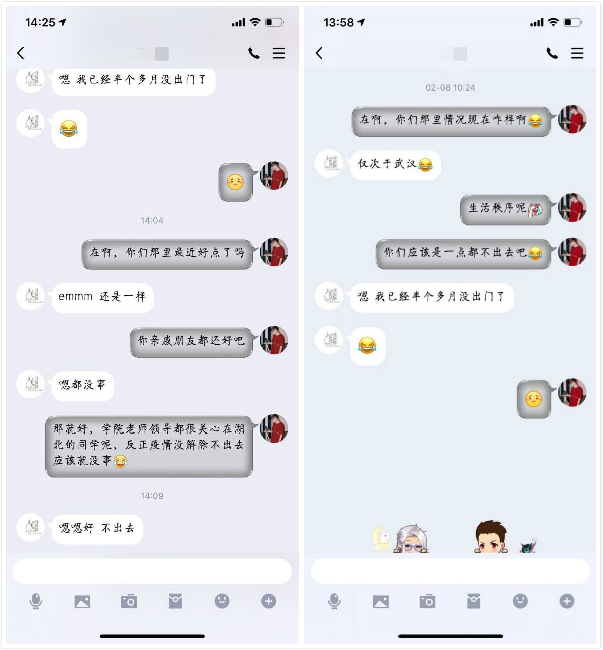 我在湖北咸宁,最近十几天我都在家里自我隔离,每天都关注着疫情的变化,全国各地人民都在努力行动,积极响应国家的号召。疫情刚开始时我心里还有点担心,但是在这二十几天的时间内,老师会定期地给我打电话,了解我的健康状况并帮助我积极调整心态,我深受感动。学院老师的关怀给了我信心,相信这次疫情绝对会好转。