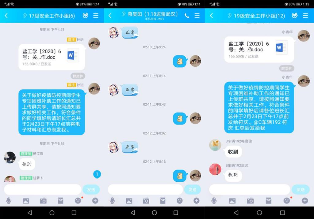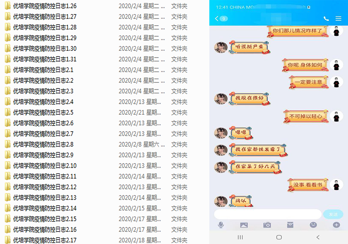 疫情就是命令,防控就是责任。新冠肺炎疫情发生以来,我校辅导员第一时间响应、第一时间行动、第一时间落实,充分发扬斗争精神,时刻保持战时状态,全力帮扶指导学生普遍关心的考研复试、就业创业、心理咨询、生涯规划,千方百计保障学生成长“不掉线”。纵然远隔千里,依然把爱和温暖送到学生身边,构筑起坚强的抗击疫情工作阵地,践行着教育者立德树人的使命和担当。