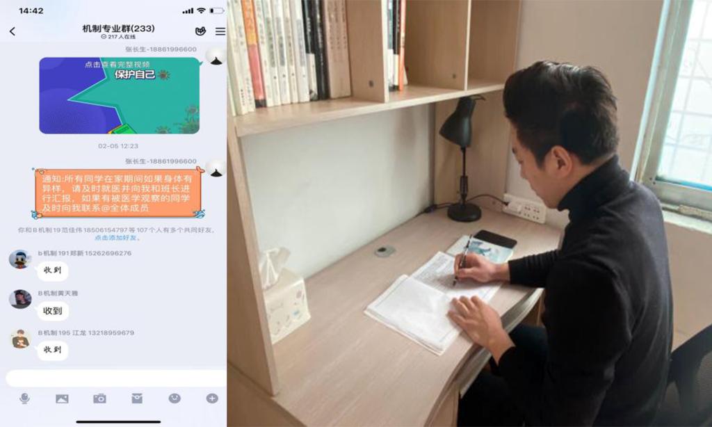 用“信心”鼓舞学生。一场突如其来的疫情,牵动着所有人的心。按照学校的统一部署和要求,在学院党政的指导下,他以“爱国”“致敬医护者”等为主题进行线上宣传,鼓舞学生,坚定信心。用“关心”陪伴学生。他每天与湖北籍学生线上交流,了解其健康状况;与所带班级学生一一电话联系,确保信息畅通;收集学生健康统计表并撰写学院疫情防控日志;建立省外学生和入苏返苏学生联络群,每日打卡,关注学生动向。用“细心”引导学生。通过学生们的沟通,及时发现学生情绪的波动,了解其缘由,并积极引导他们将注意力转移至课程学习、个人成长发展规划以及兴趣爱好上来。武汉加油!中国加油!