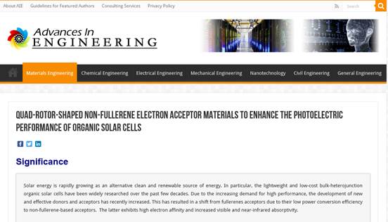 AIE报道链接:https://advanceseng.com/quad-rotor-shaped-non-fullerene-electron-acceptor-materials-enhance-photoelectric-performance-organic-solar-cells/