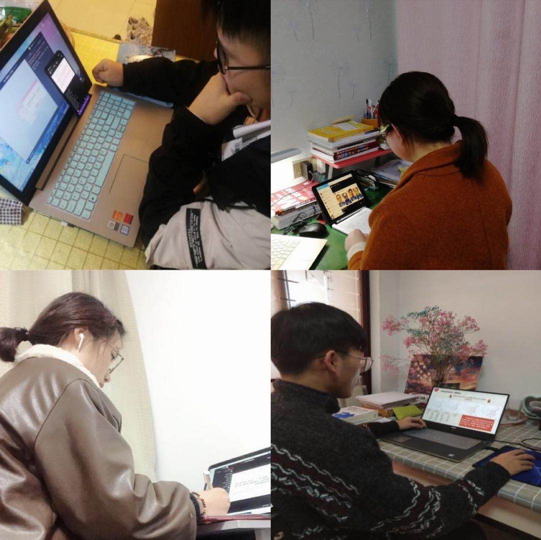 同学们在线听课和网上讨论