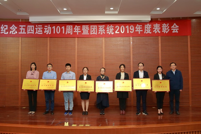 校“五四红旗团委标兵”和“五四红旗团委”代表领奖