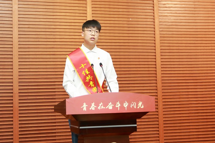 校“十佳共青团员标兵”代表、环境学院王昊同学发言