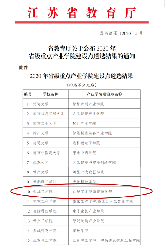 6月9日,省教育厅公布2020年省级重点产业学院建设点遴选结果,我校新能源学院在学校自主申报基础上,经专家评审、结果公示和省教育厅审核,成为江苏省首批15个省级重点产业学院之一。推进重点产业学院建设是江苏省促进人才培养供给侧和产业发展需求侧结构要素全方位深度融合,推动江苏高质量发展走在前列、建设“强富美高”新江苏的重要举措。其建设周期为2年。