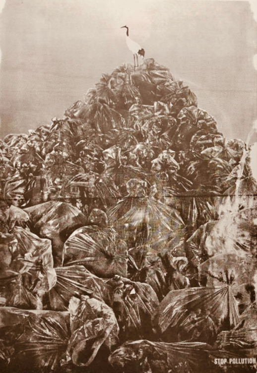 九里观广告文化传播有限公司创始人黄勇作为导师,也创作了作品供大家观摩学习。海报中的仙鹤,绝望的站在堆积如山的垃圾山上,此时的湿地已完全被人类的生活垃圾所占领,它们未来的生活栖息地将在何方?海报通过这种强烈的视觉对比反差,从而来呼吁人类要保护好湿地生态环境,共创人类与生态美好未来。