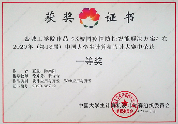 本次一等奖作品,就是徐秀芳、裴森森老师和夏旻、陶奕阳同学组成的师生团队,从学校实际需求出发,经过20多个日日夜夜,为学校疫情防控开发的师生健康信息报送系统。该系统运行稳定,用户体验良好,大大减轻管理人员的工作量,提升了管理效率。该作品还受到其他高校和媒体的关注,最终在3万多件作品中脱颖而出,获得省赛、国赛一等奖的好成绩。