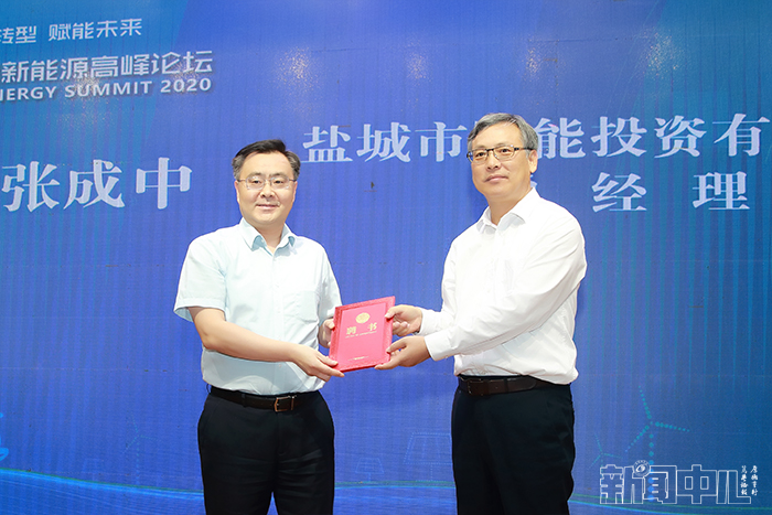 校党委书记刘祖汉向盐城市国能投资有限公司总经理张成中颁发聘书