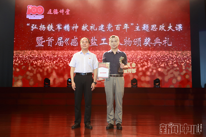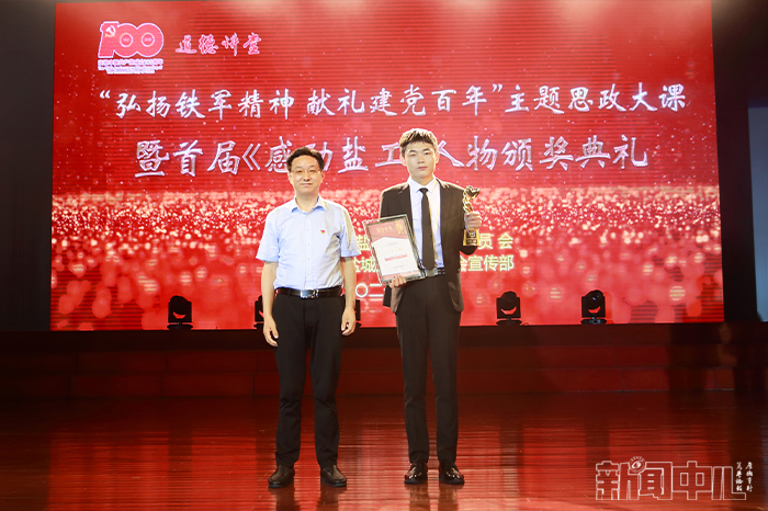 6月23日下午4点,在行政楼报告厅,由学校党委宣传部承办的“弘扬铁军精神,献礼建党百年”主题思政大课暨首届“感动盐工”人物颁奖典礼隆重举行。校党委书记刘祖汉,党委副书记、校长方海林,党委副书记薛浩,党委常委、副校长邵荣,党委常委、纪委书记、省监委派驻监察专员陈春雷,党委常委、副校长宋长春、王资生、魏少华,江苏省志愿服务联合会副会长、盐城市委宣传部二级调研员陈中才等领导出席典礼并分别为“感动盐工”人物当选者颁发奖杯和证书。