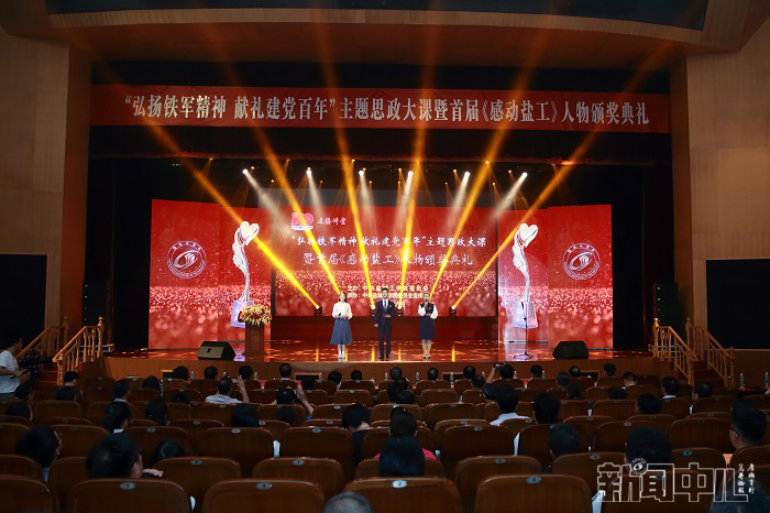 据悉,为着力推进“十大育人体系”建设,大力提升学校思想政治工作质量,在全校营造崇德向善、见贤思齐的浓厚氛围,根据校党委《“感动盐工”人物评选办法》,学校于 2020 年 10 月 5 日启动了“感动盐工” 人物评选活动。经各二级党组织民主推荐、网络投票、专家评审、公示、校党委常委会研究等环节,选出 3 个团体和 7 名个人为首届“感动盐工” 人物。为了宣传好他们的在平凡岗位上的不平凡事迹,评委会组织许多同志利用业余时间进行反复讨论和研究。本次展示活动由党委书记刘祖汉,党委副书记、校长方海林担任顾问,党委副书记薛浩担任总策划。宣传部还邀请了胡维定、洪林、孙景曾、张建中、李斌、杨怀祥、朱志勇、蒋继华、孙琴等多位同志对颁奖词等内容进行讨论,展示和采访视频都由校内非专业老师高加友、江莹、戴心怡、陶志涛等师生使用普通设备利用业余时间拍摄和编辑。本次颁奖典礼是我校庆祝中国共产党成立100周年系列活动之一,也是我校立德树人的一次主题思政大课,更是文明校园建设成果的一次集中展示。