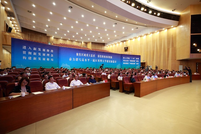 曹路宝在致辞中指出,教育兴则国家兴,教育强则国家强,教育发展水平是一座城市综合竞争力的重要标志。他介绍了盐城深入实施教育优先发展战略,全面落实立德树人根本任务,教育现代化建设方面取得的明显成效。曹路宝强调,驻盐高校是盐城高质量发展的宝贵资源,也是培养和集聚高水平人才的重要平台。市委市政府一直高度重视驻盐高校发展,专门出台文件,每年安排不少于1亿元资金保障驻盐高校发展,在学科专业建设、创新平台打造、基础设施配套等方面提供全方位支持。他表示,市政府根据协议,将在天山路建设盐城工学院新校区,帮助学校实现一体化办学;合力举办大学科技园,将更多的科研创新工作任务委托学校承担,促进政产学研融合发展;扩大资金投入用于学校的人才培养;建立健全常态化合作交流机制,进一步研究细化政策举措,全力支持盐城工学院新老校区置换提升、人才服务保障、科研平台建设,携手共创校地融合发展新局面。