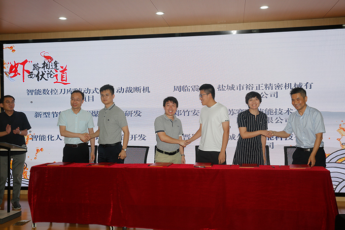 第二阶段为闭幕式,科学技术处处长丁成对龙虾科技节活动进行了总结。会议对获优秀组织奖的海洋与生物工程学院与纺织服装学院进行表彰,为封功能教授颁发突出贡献奖。颁奖仪式之后,西伏河产学研协同创新中心负责同志还与5家企业签订了入驻协议,学校科技人员与合作企业签订了6项产学研合作项目。