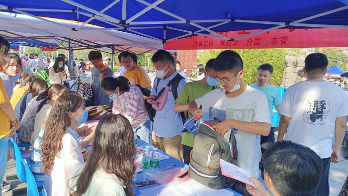 校领导到迎新现场看望报到研究生,了解研究生报到情况 刘甜田 摄