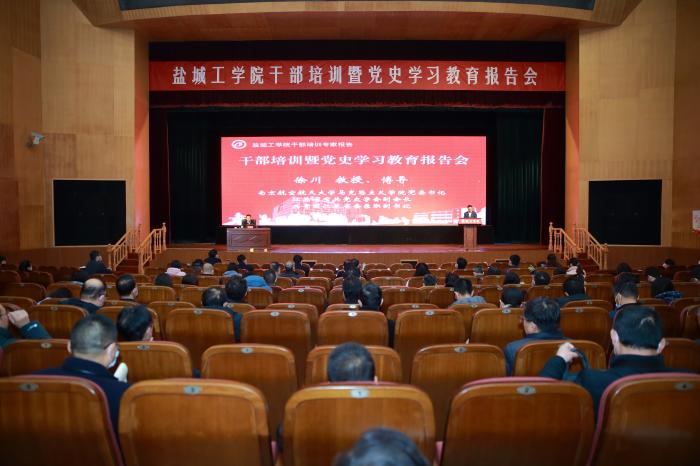 12月5日上午,按照学校2021年处科级干部培训班教学计划及党史学习教育方案,学校在行政楼报告厅举办干部培训暨党史学习教育专家报告会,南京航天航空大学马克思主义学院党委书记徐川教授应邀作《学好党史这门必修课》专题报告。校党委副书记薛浩主持,全体处科级干部、党支部书记、学生干部代表等近400人参加。