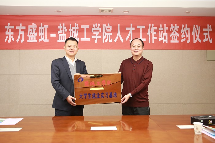 在行政楼830会议室,邵荣代表学校致辞,介绍了我校发展历程、办学特色以及我校毕业生的就业情况。双方就人才招聘、技术合作开发等工作进行深入交流并达成合作意向。邵荣、孔文龙代表校企双方签订人才工作站合作协议并为人才工作站、大学生就业实习基地授牌。