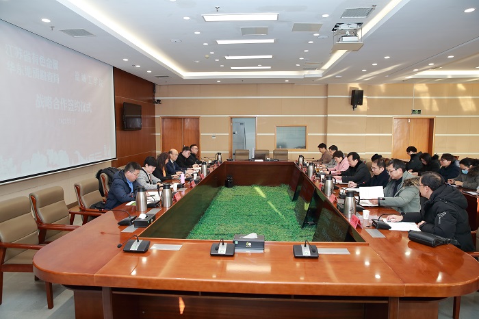 1月12日上午,在南校区行政楼九楼会议室,我校与江苏省有色金属华东地质勘查局签订战略合作框架协议。江苏省自然资源厅二级巡视员黄克蓉,江苏省有色金属华东地质勘查局副局长余新明,我校党委常委、副校长王路明出席。江苏省有色金属华东地质勘查局地球化学勘查与海洋地质调查研究院副院长闫玉茹、综合办主任吴敏、海洋所所长张刚、高工万凯超,我校科技处处长丁成、研究生院院长邢晓平、环境学院党总支书记陈阳以及环境学院教师代表等参加签约仪式。