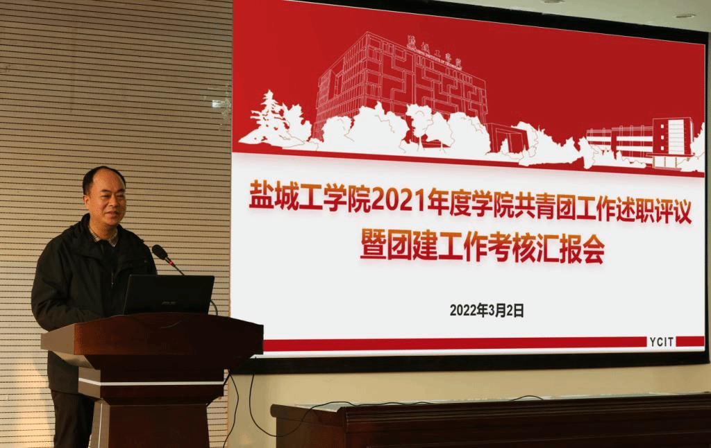 3月2日下午,校团委在希望大道校区土木馆报告厅召开2021年度学院共青团工作述职评议暨团建工作考核汇报会。党委常委、副校长邵荣,党委组织部、党委宣传部、党委学工部等相关负责同志,各二级学院党委(总支)分管学生工作书记出席并担任评委。二级学院团委、学工办负责同志参加。校团委书记杨秀丽主持汇报会。