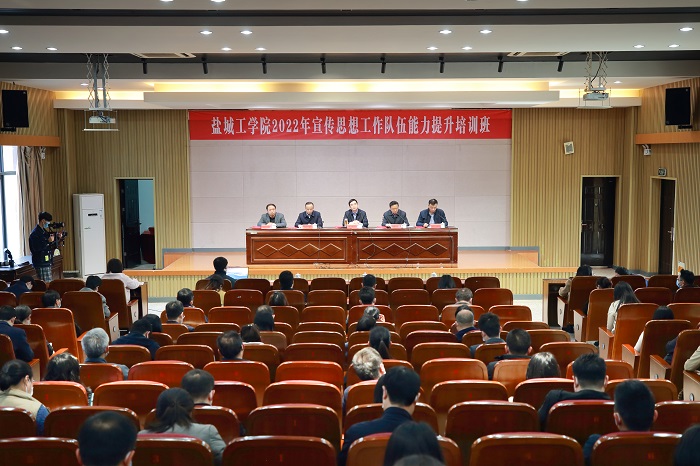 3月11日下午,在希望大道校区机械馆报告厅,学校举办2022年宣传思想工作队伍能力提升培训班开班式暨意识形态工作专题报告会。盐城市委宣传部常务副部长、市新闻出版局(市版权局)局长薛万昌,校党委副书记薛浩,校党委常委、党委统战部部长姚军出席。校党委宣传副部长刘荣主持会议。