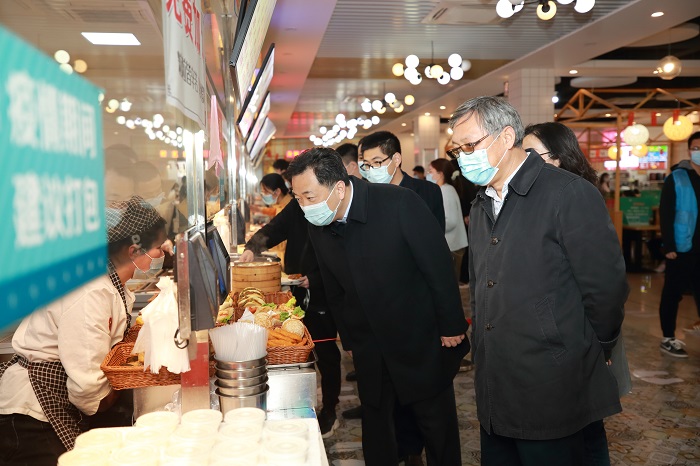 费坚一行按照疫情防控要求查码测温后进入学校,听取了学校疫情防控工作汇报,详细了解校门管控、学生就餐、防疫物资储备、师生核酸检测、公共场所消杀等相关情况。