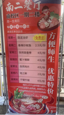 在饮食服务方面,为保障留校师生的就餐需求,从其他服务中心征调人员,并对接师生党员突击队、青年团员突击队充实后勤非核心岗位。各餐厅安装就餐隔板,鼓励“线上点餐、打包带走”的就餐方式,做到人员进出口分离,所有餐厅服务人员每日测温上岗,全程佩戴口罩。为了在校园疫情防控严格管理中增加学生的幸福感,推出连续10天左右的特价菜活动,稳定物价、丰富菜品,满足不同地区学生的不同口味,让学生吃的舒心,得到实惠,同时通过分时段供应,引导学生错峰、错时、错位就餐,并面向全体学生免费发放2.1万多张10元战“疫”爱心餐券,让学生在特殊时期感受学校关爱。
