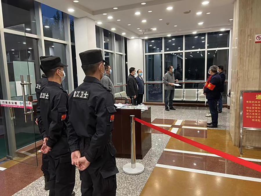 为深入贯彻落实疫情防控部署要求,进一步筑牢校园疫情防线,确保师生员工身心健康和校园安全稳定,4月15日,志愿服务保障组下发《关于疫情防控校园封闭期间组织部分住校党员干部开展校园巡逻工作的通知》,成立疫情防控校园巡逻队,每晚每个校区安排7名教师党员于19:00-23:00在校园内巡逻,负责维护校内治安秩序和师生安全,重点督查翻越围墙、私自进出校园、传递外卖快递等现象,制止和处置各种违规违法的行为。