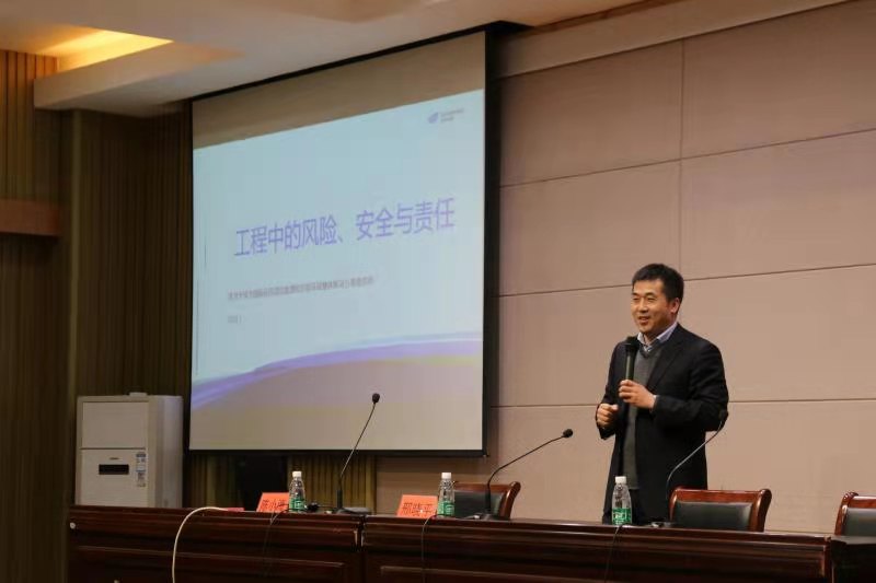3月17日下午,我校在机械馆报告厅举行仪式,聘请江苏省产业教授、金风科技有限公司海上业务单元副总经理陈小海教授为研究生同堂授课教师。仪式后,陈小海教授为2020级专业学位研究生开始讲授“工程中的风险、安全与责任”课程。