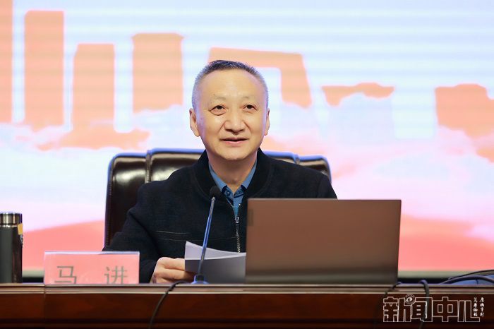 动员会后,甘肃政法大学马克思主义学院二级教授,国务院政府特殊津贴终身享受者,中宣部、教育部百名优秀“两课教师”马进作题为《奋斗百年路,启航新征程》的专题报告。他介绍了中国共产党从诞生、成长到壮大,历经革命、建设和改革开放的非凡历程,阐述了我党以史强党、以史资政、以史育人的伟大力量;系统梳理了习近平总书记关于党的历史的重要论述,全面回顾了中国共产党百年奋斗的光辉历程和历史性贡献,立足回答“为什么学”“学什么”“怎样学”等现实问题,深入讲解和系统阐述了党史学习教育的目的和意义、方式方法和重点内容。他强调,要从党的理论成果和思想伟力、党的领导地位和坚强核心、党的光辉历程和伟大贡献、党的性质宗旨和初心使命、党的革命精神和优良作风、党的历史经验和政治优势六个方面深刻领悟党史学习教育的“六大重点内容”。他提出,我们要牢牢把握科学方法,讲好中国共产党故事,树立正确党史观,坚持学用结合,以昂扬姿态奋力开启全面建设社会主义现代化国家新征程。