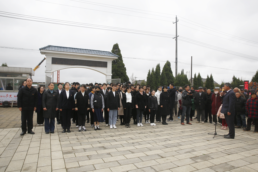 在绵绵春雨的洗礼下,五条岭烈士陵园更显庄严肃穆。团员们手握右拳,统一着装,高声朗读入团誓词。在师生们激昂的情绪下,邵荣为同学们上了一节特殊而难忘的思政课。邵荣对同学们说:“没有先烈们壮丽的前世,怎能有我们红旗下的今生!今天,为的是纪念一群和我们一样的、又和我们不一样的人。他们是那样的平凡,可能大字都不识几个;他们是那样的普通,普通得我们到今天也找不全他们的名字。但是,他们和我们是一样的——因为,我们有着共同的名字:中国人!”他希望每一位同学认真学习四史,擦亮初心,缅怀先烈们的丰功伟绩,沿着他们用鲜血和生命为开创的光辉道路奋勇前进!
