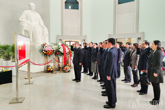 中心组成员一起向周恩来座像三鞠躬,表达诚挚追思。在刘祖汉领誓下,中心组成员一起重温入党誓词,面对党旗庄严宣誓。大家怀着崇敬的心情,参观了“人民总理周恩来”陈列展,缅怀周总理为人民和国家建立的卓越功勋,回首周总理为国为民、克己奉公的一生。在一幅幅泛黄的照片、一件件简朴的实物、一段段珍贵的影像资料前驻足凝视,认真听取讲解,不时询问有关情况,了解背后的感人故事。