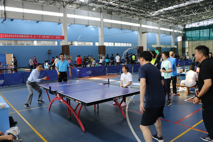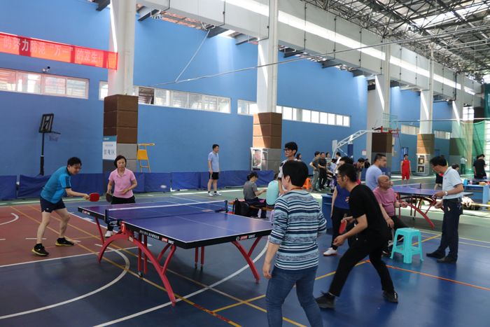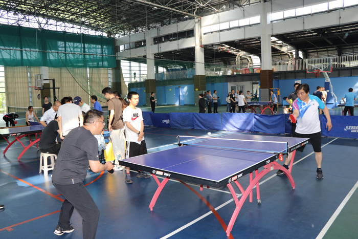 5月29日,我校第九届教职工乒乓球赛在学校南校区风雨操场举行。校党委副书记薛浩,副校长邵荣、宋长春参加活动。薛浩宣布比赛开幕,校工会主席谢毅敏致开幕词,体育教学部党总支书记秦明胜主持开幕式。全校26个分工会代表队200多人参加比赛。