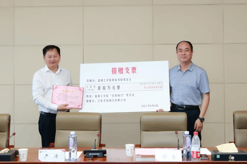 江苏圣泰阀门有限公司董事长严涛向学校捐赠奖学金